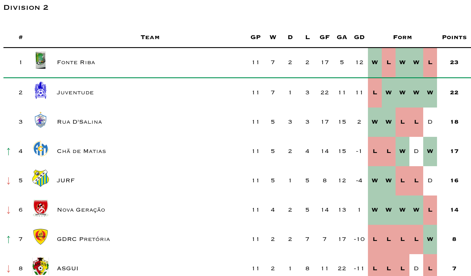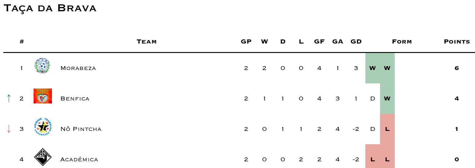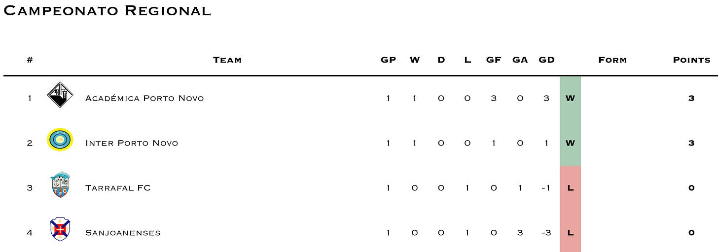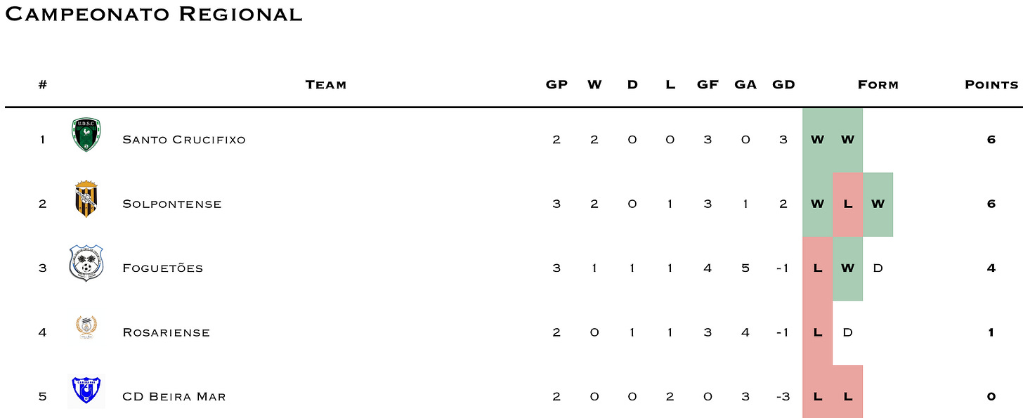 Reminder that GD Varandinha has withdrawn from competitions. I’m still waiting for clarification if the league will continue to award 3-0 wins to teams scheduled to play Varandinha or if they’ll nullify the prior results (which seems more likely). Until then I’ll continue updating as 3-0 wins for Varandinha’s opponents.
