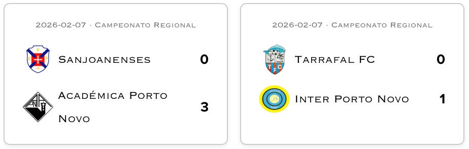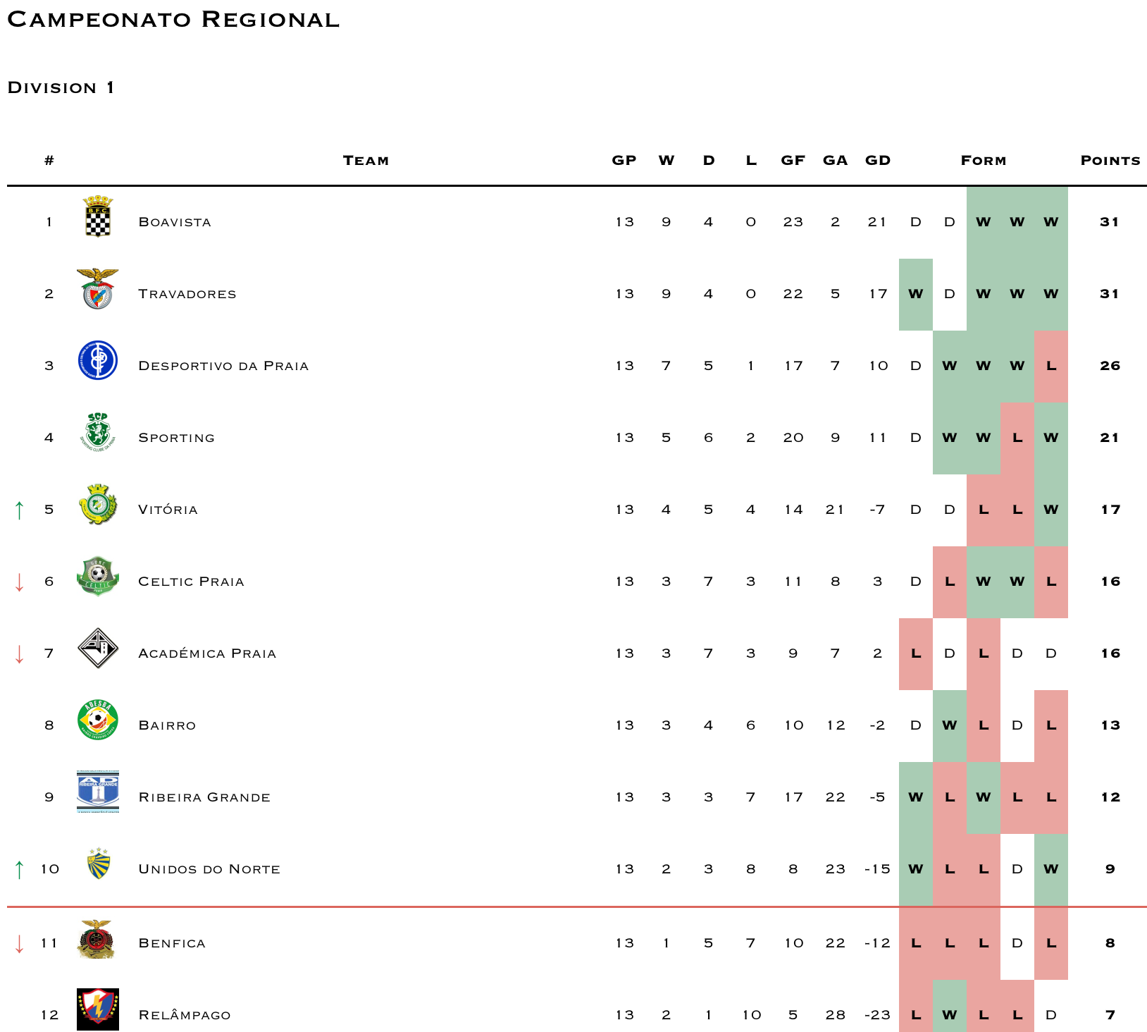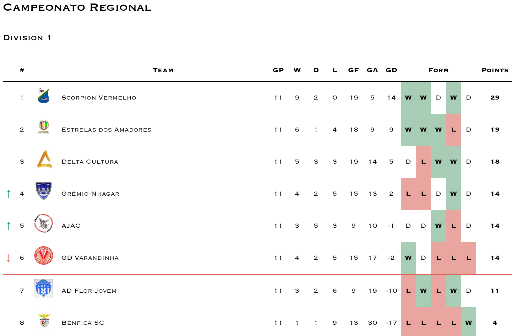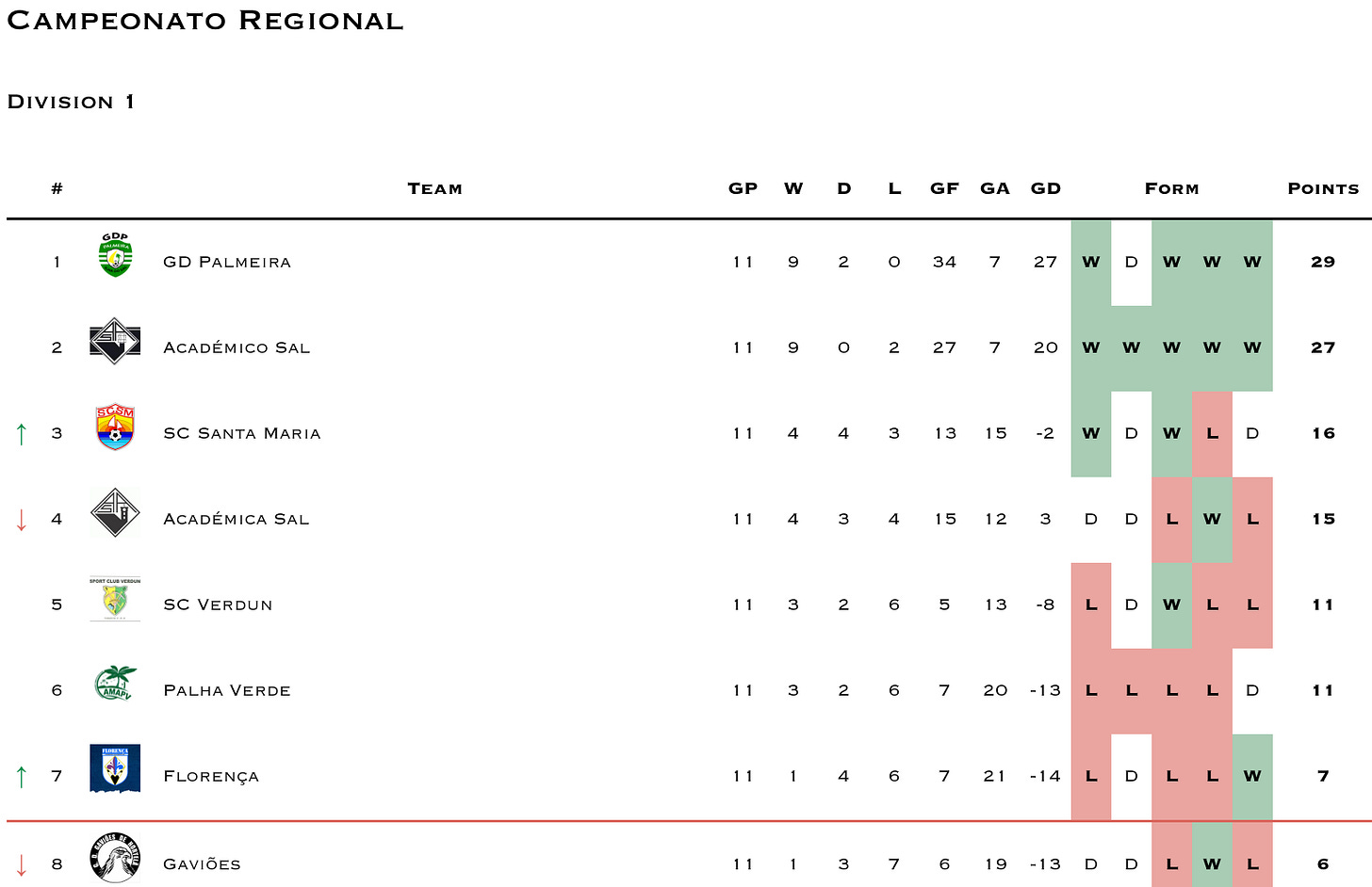 Reminder that GD Varandinha has withdrawn from competitions. I’m still waiting for clarification if the league will continue to award 3-0 wins to teams scheduled to play Varandinha or if they’ll nullify the prior results (which seems more likely). Until then I’ll continue updating as 3-0 wins for Varandinha’s opponents.