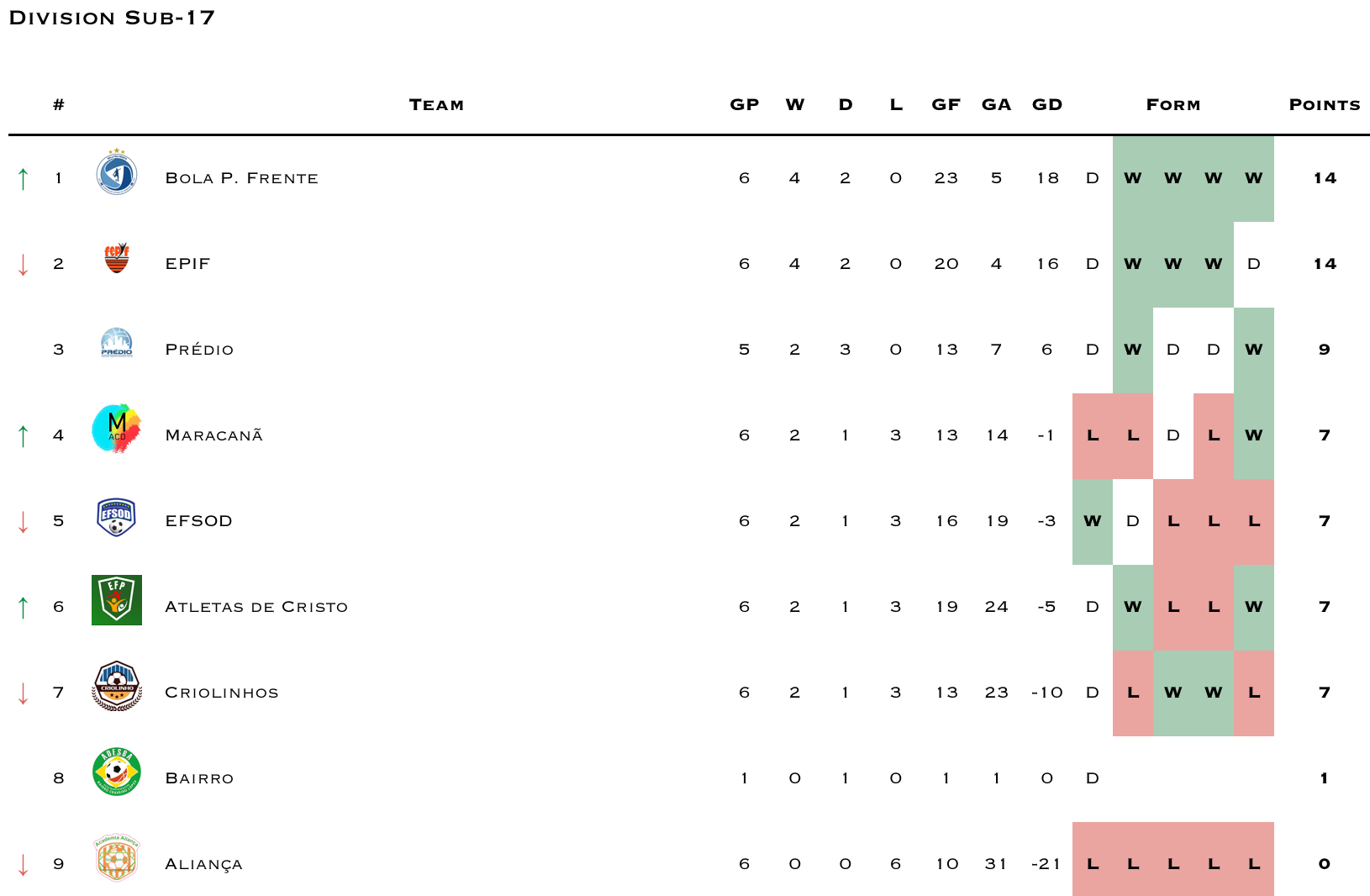 Sub‑17 league begins with Titans, Victory School, and the Embryos