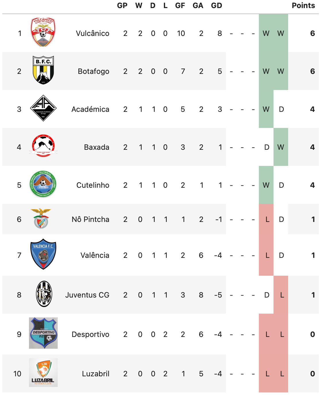 We also saw the second week of games played in the campeonato regional with Vulcânico and Botafogo, last year’s champion, at the top of the table. Newly promoted Desportivo do Cova Figueira struggle with the start of the season and Baxada sits mid-table, but it is still early in the season.