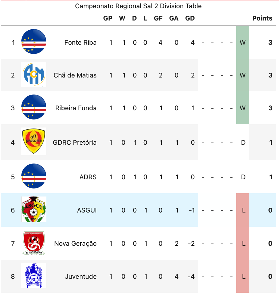 No word yet on the status of the regional league of Maio. The association failed to host a competition last season but as mentioned in the last roundup, several clubs have expressed interest in participating in this year’s competition.