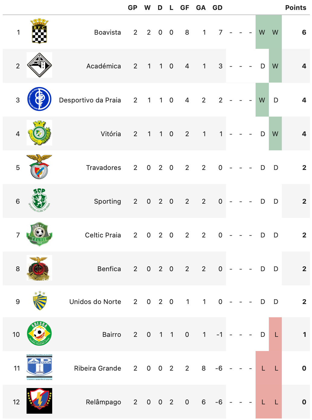 The southern part of the island of Santiago continued with the second week of action in the campeonato regional. The biggest results came from the domination of Académica and Boavista over their opponents. Académica handidly defeated Relampago, meaning lightning in Portuguese, 3-0 while Boavista shipped 5 past Ribeira Grande, who managed to score one and avoid being shutout.