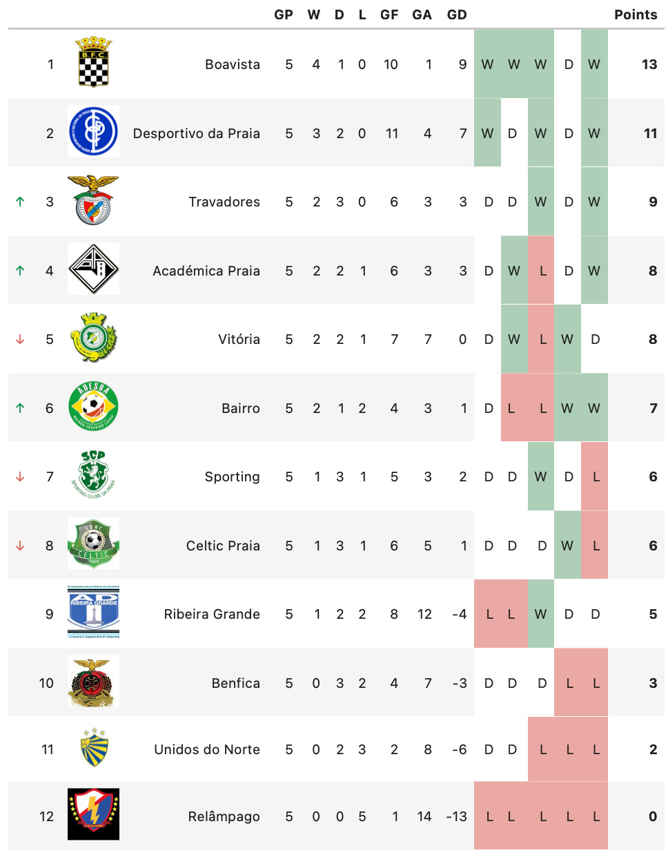 The big game of the weekend was the Praia derby featuring Académica da Praia and Sporting da Praia with Académica winning out 1-0. The loss dropped Sporting all the way to seventh.