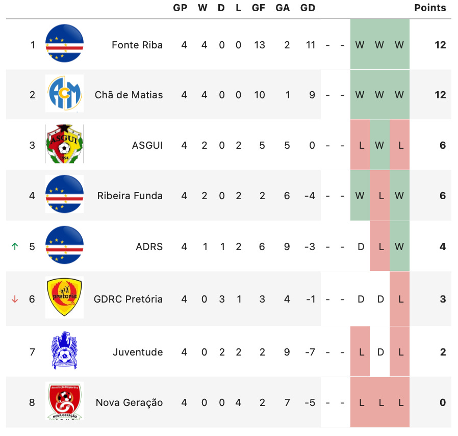 The 2° division is following Fogo with Fonte Riba and Chã de Matias pulling away from the rest of the table. Nova Geracão continuing to struggle as they last won on February 14th in a 1-0 victory over JURF.